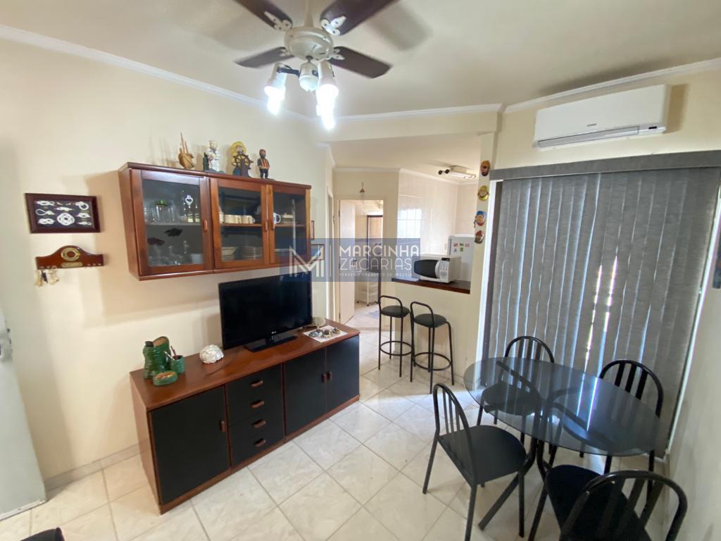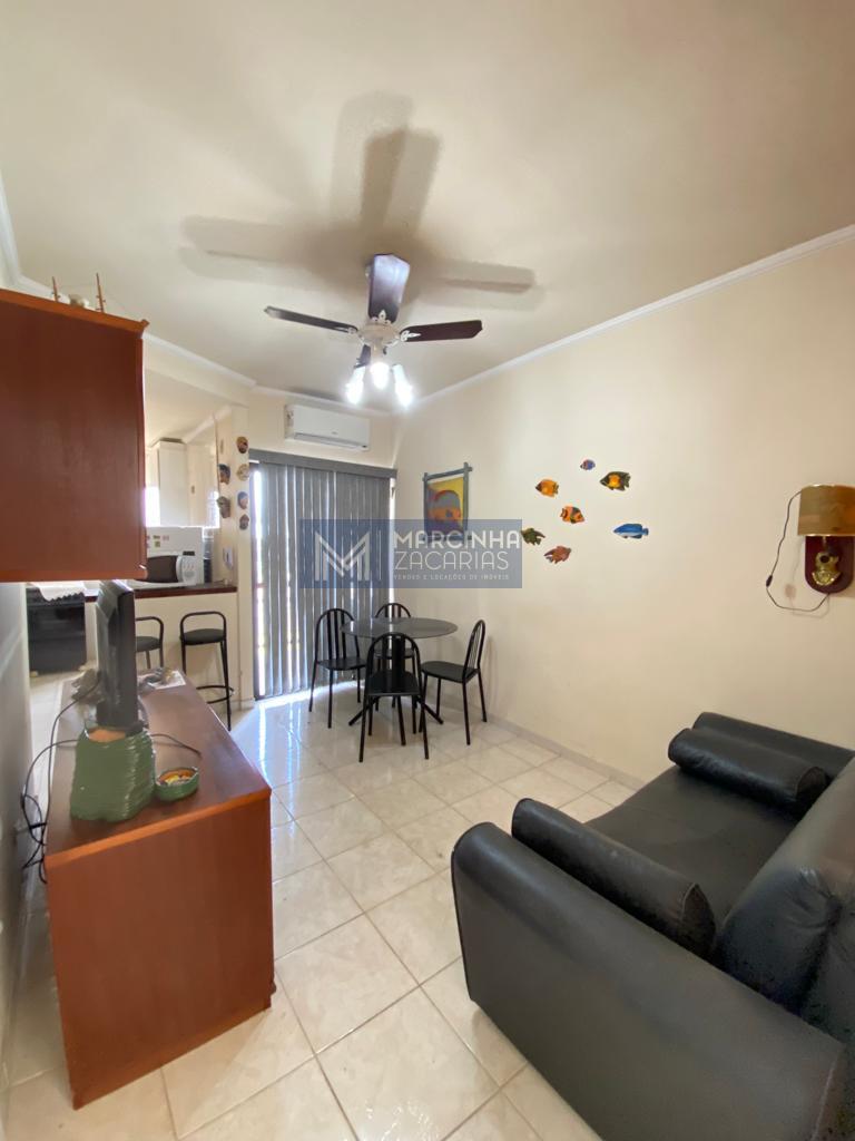 Apartamento com 1 dormitório para venda e locação no Jardim Britânia, Caraguatatuba/SP, mobiliado, ar condicionado no dormitório e na sala, área de lazer com piscina, churrasqueira, quadra poliesportiva e playground, 1 vaga de garagem.