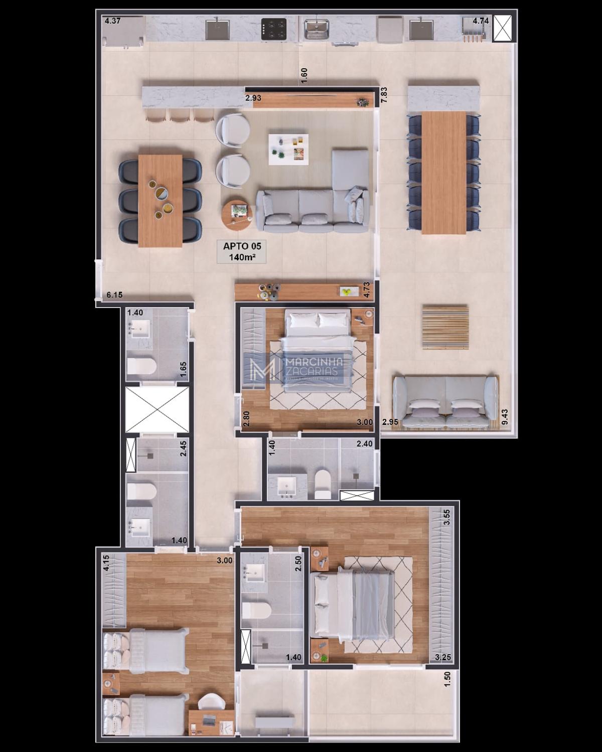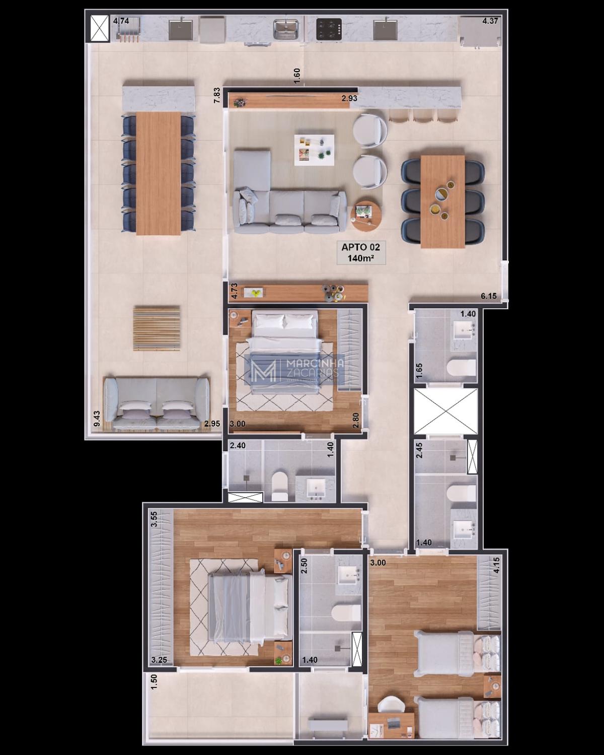 03 suítes