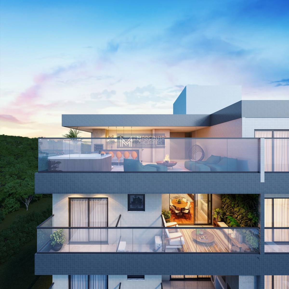 Lançamento de empreendimento na Praia do Massaguaçú, Caraguatatuba/SP. Condomínio com piscina de borda infinita, a a 7 m de altura. Apartamentos com duas vagas e garagem e hobby box. Cobertura com três vagas de garagem e hobby box.