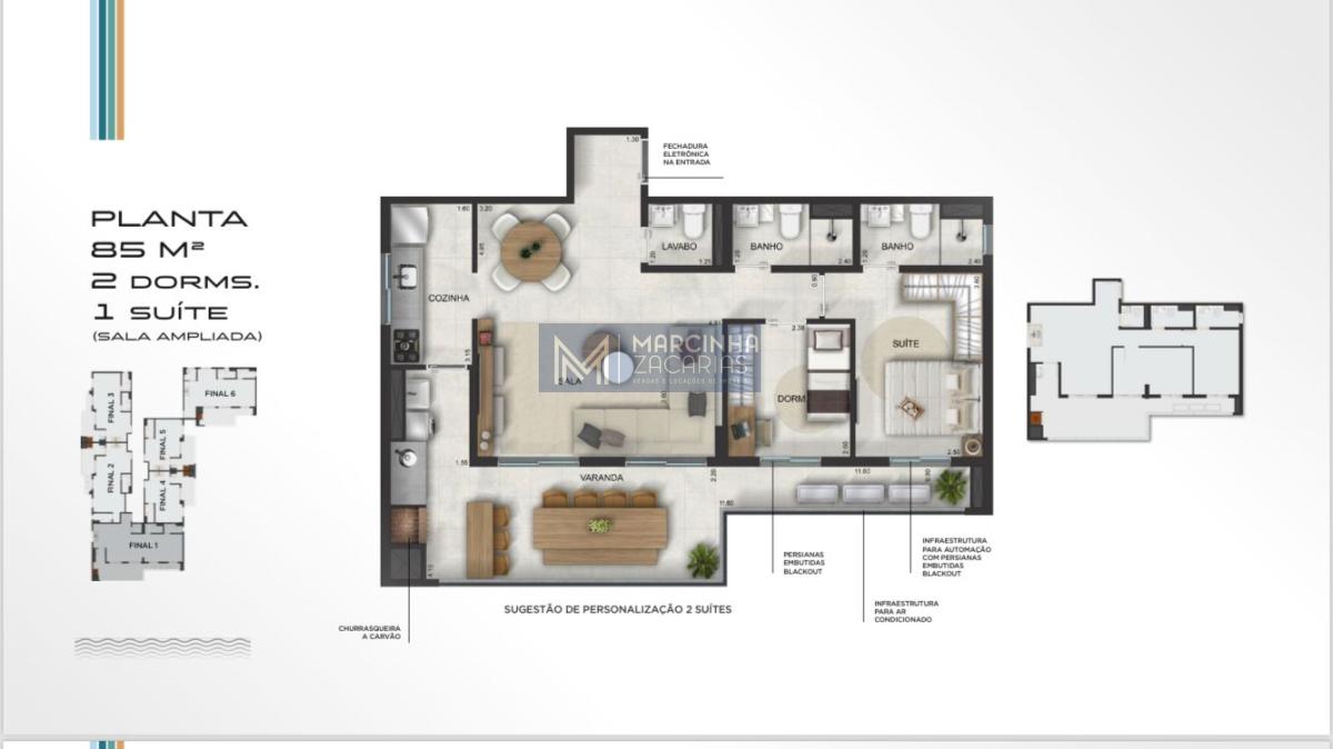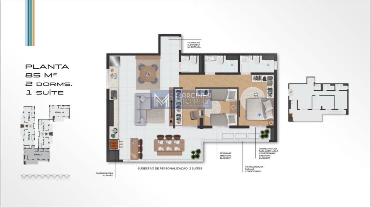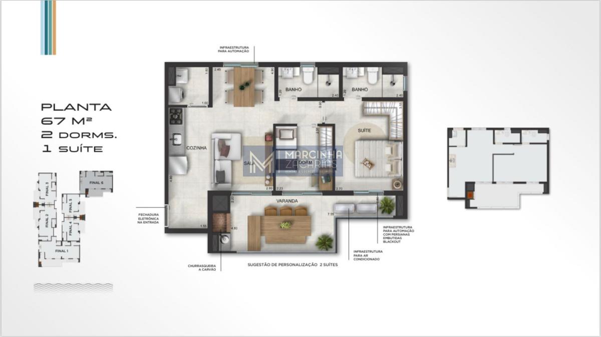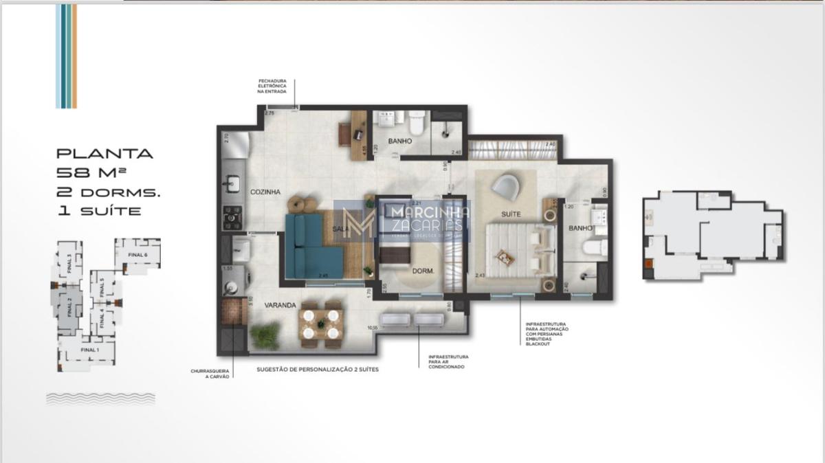 2 dormitórios: unidades: 55,86 m² e 58,50m² e 67,94m²