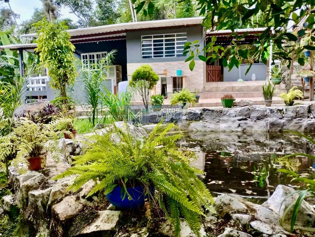 Possui uma casa de aproximadamente 100m² de área construída, com 3 dormitórios, sendo 1 suíte, 2 banheiros, 2 cozinhas (uma interna e outra externa com fogão de lenha com uma área grande coberta e churrasqueira), tanque de peixes, piscina natural com água da cachoeira, amplo pomar com laranjas, limão, atemóia, siriguela, manga, jaboticaba, amora, pitanga, horta e 04 Galinheiros divididos e com telas.