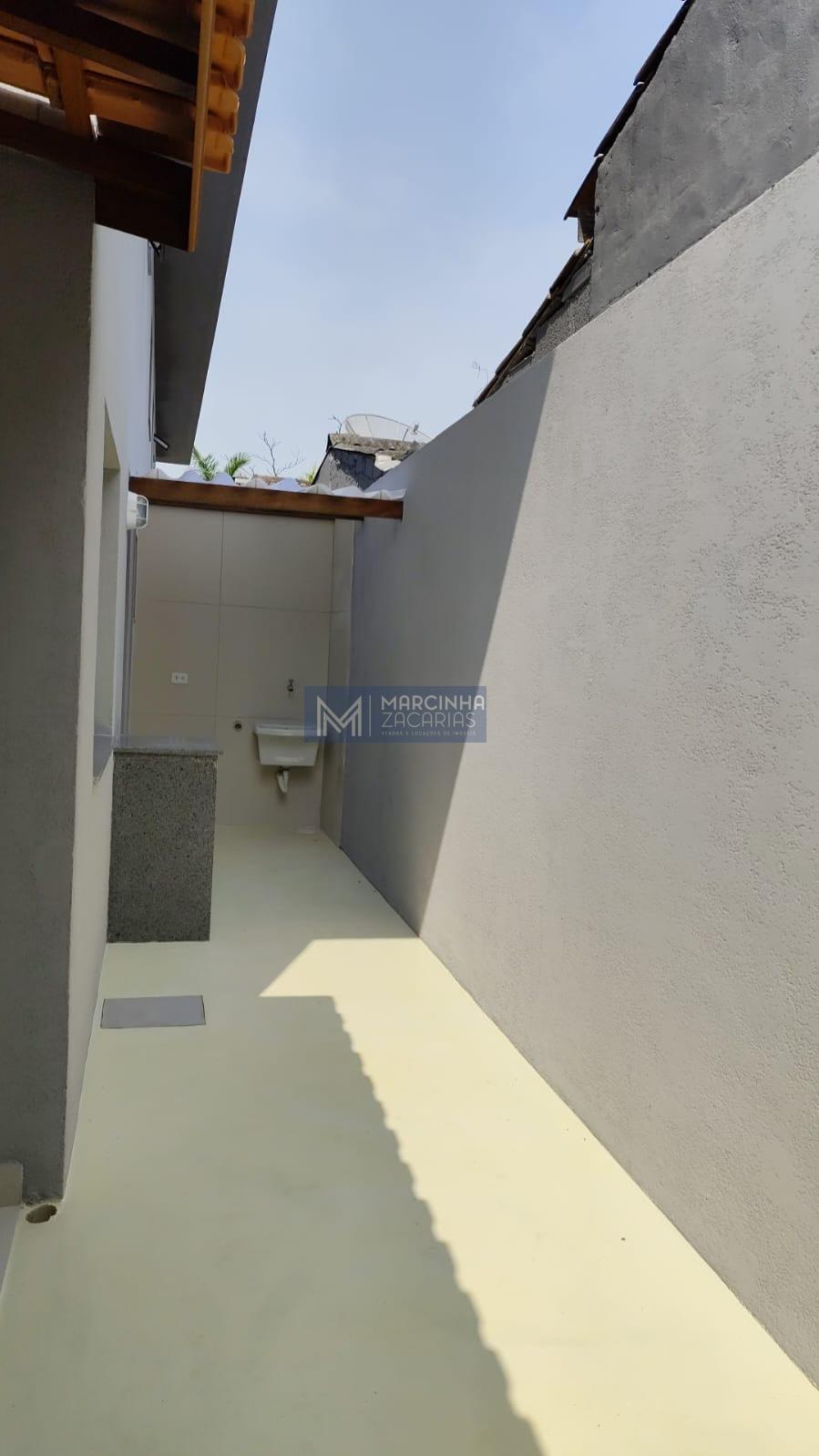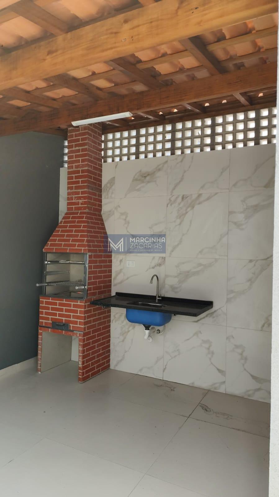 Lindo sobrado novíssimo na Prainha, Caraguatatuba/SP, para locação definitiva, com 2 dormitórios com sacada, sala/cozinha, 2 banheiros, 1 vaga de garagem e churrasqueira privativa.