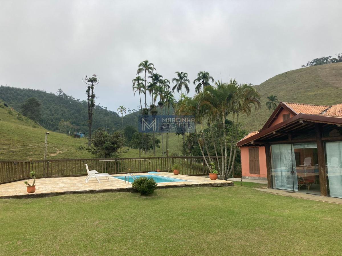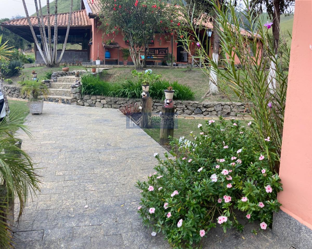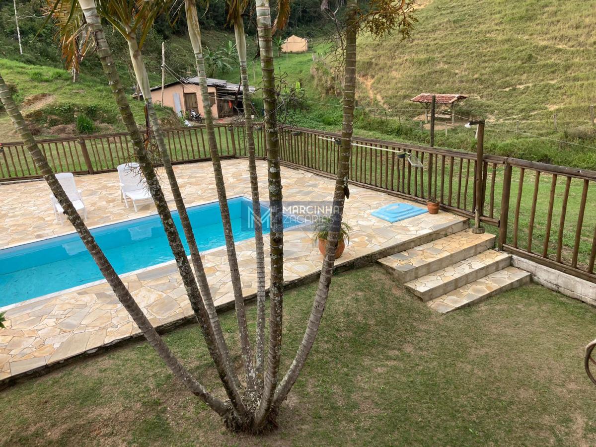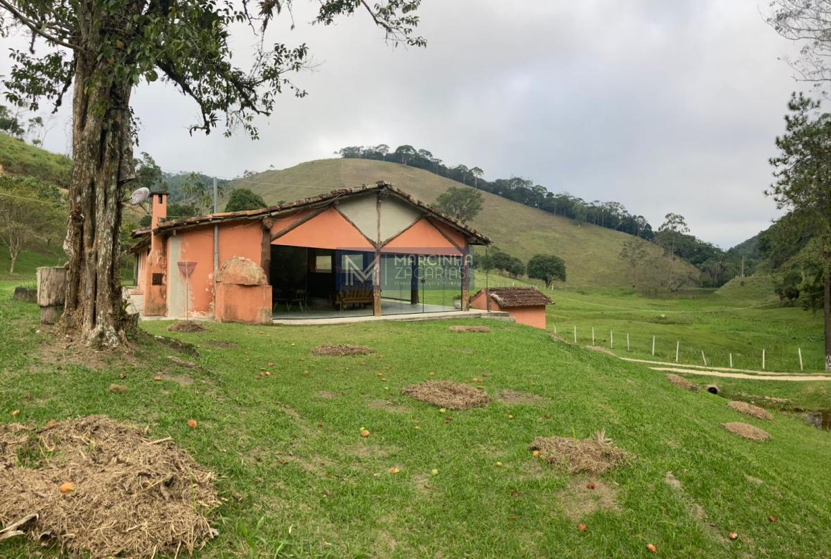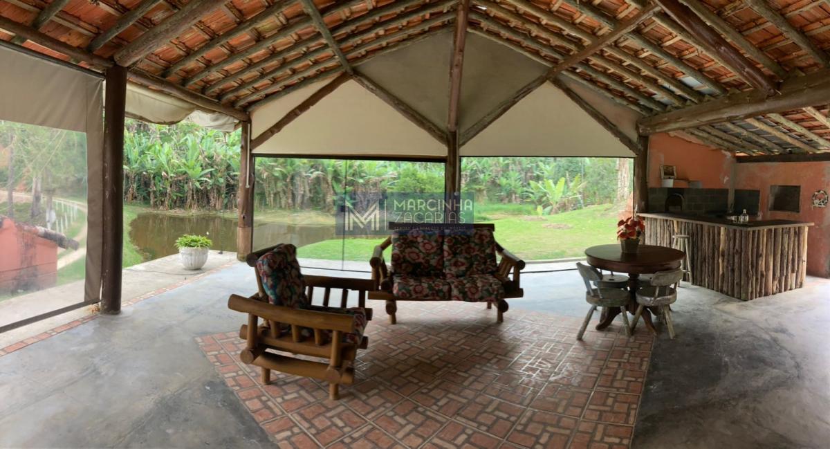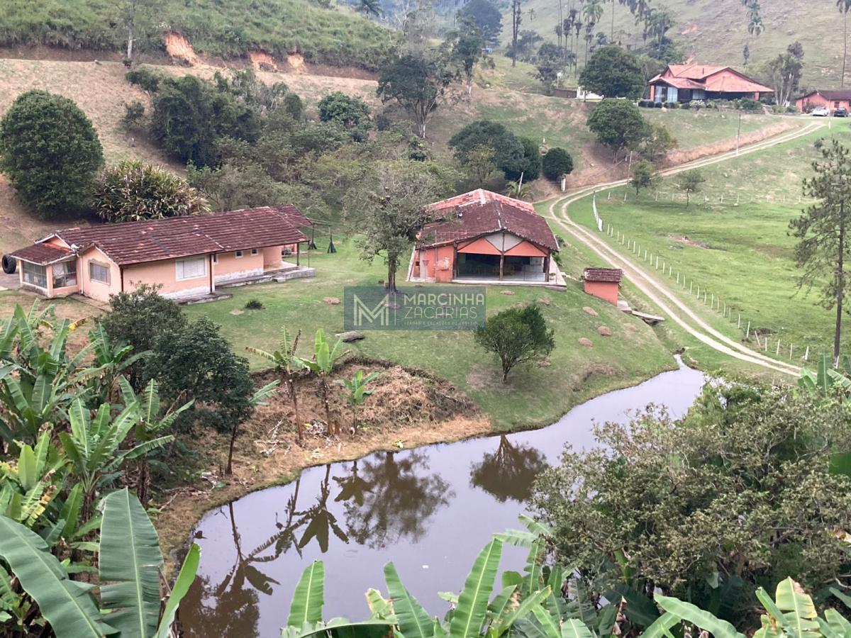 A propriedade tem 4 casas amplas, uma delas com piscina, mais uma casa de caseiro, chiqueiro, baía, pomar, alambique, salão de festas com churrasqueira e fechado com vidros e lago ideal para criação de peixes.