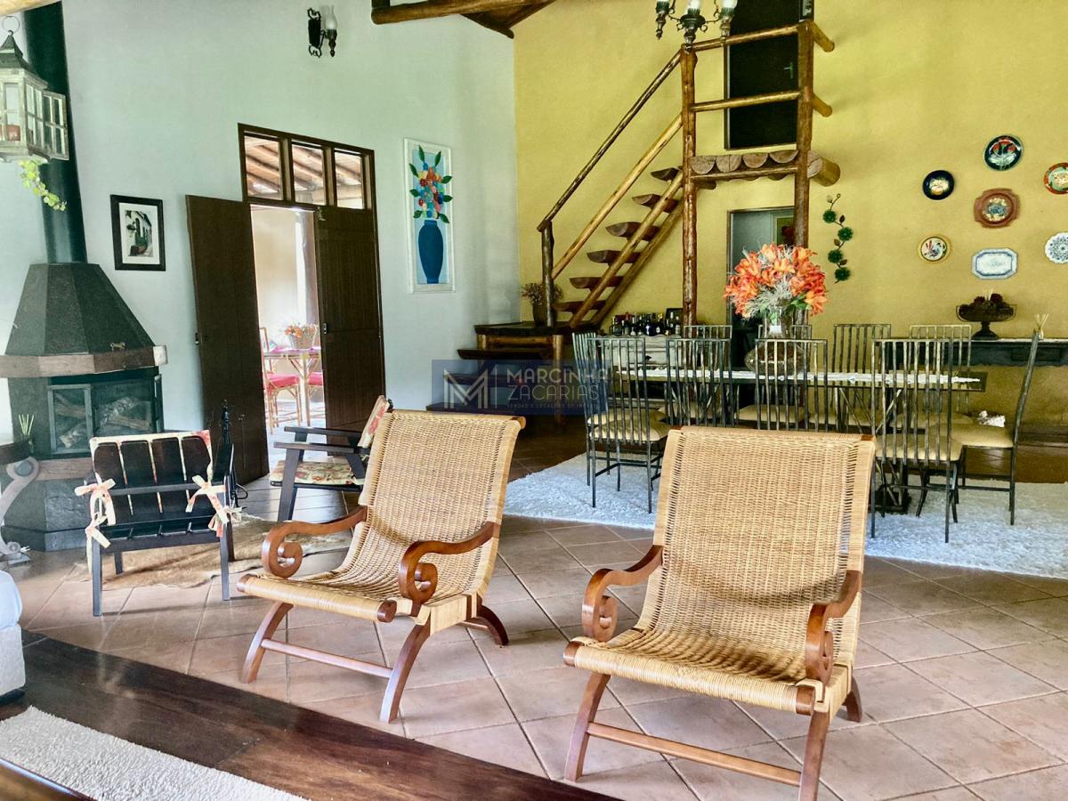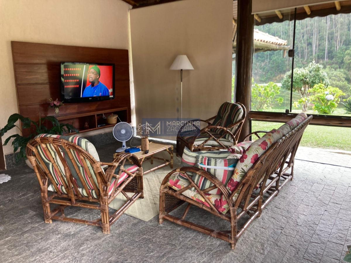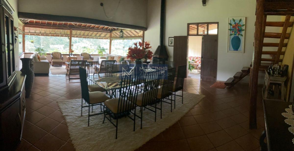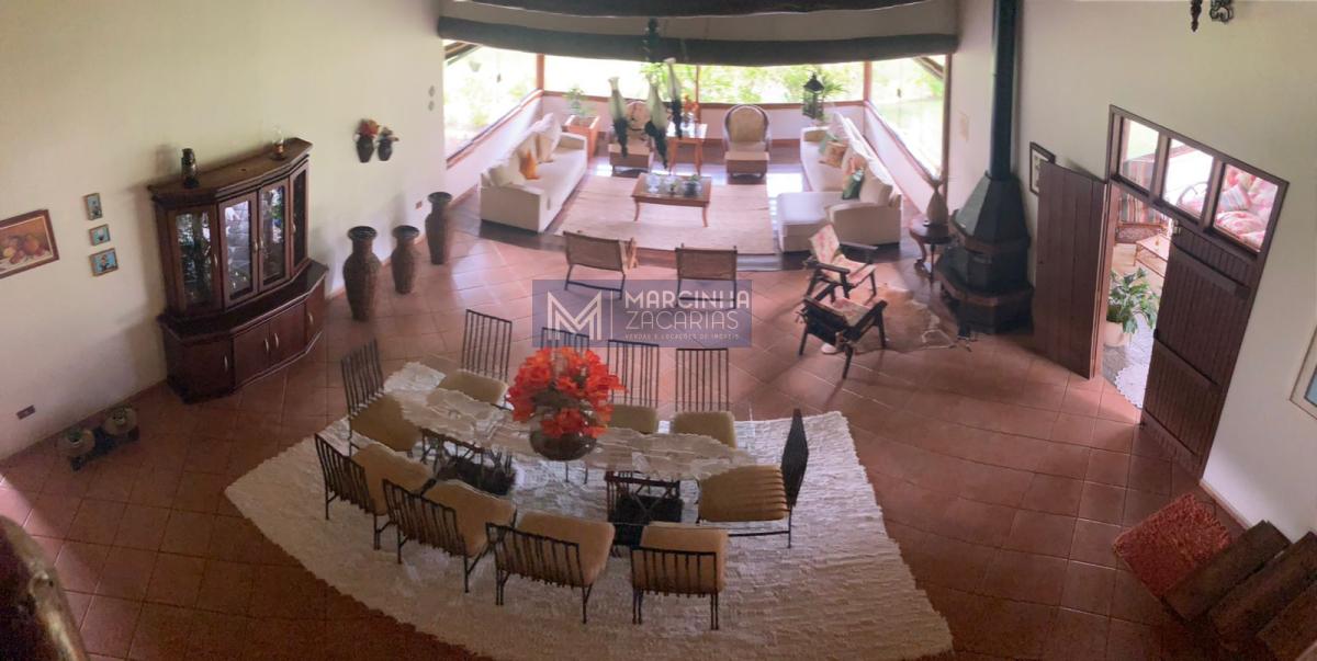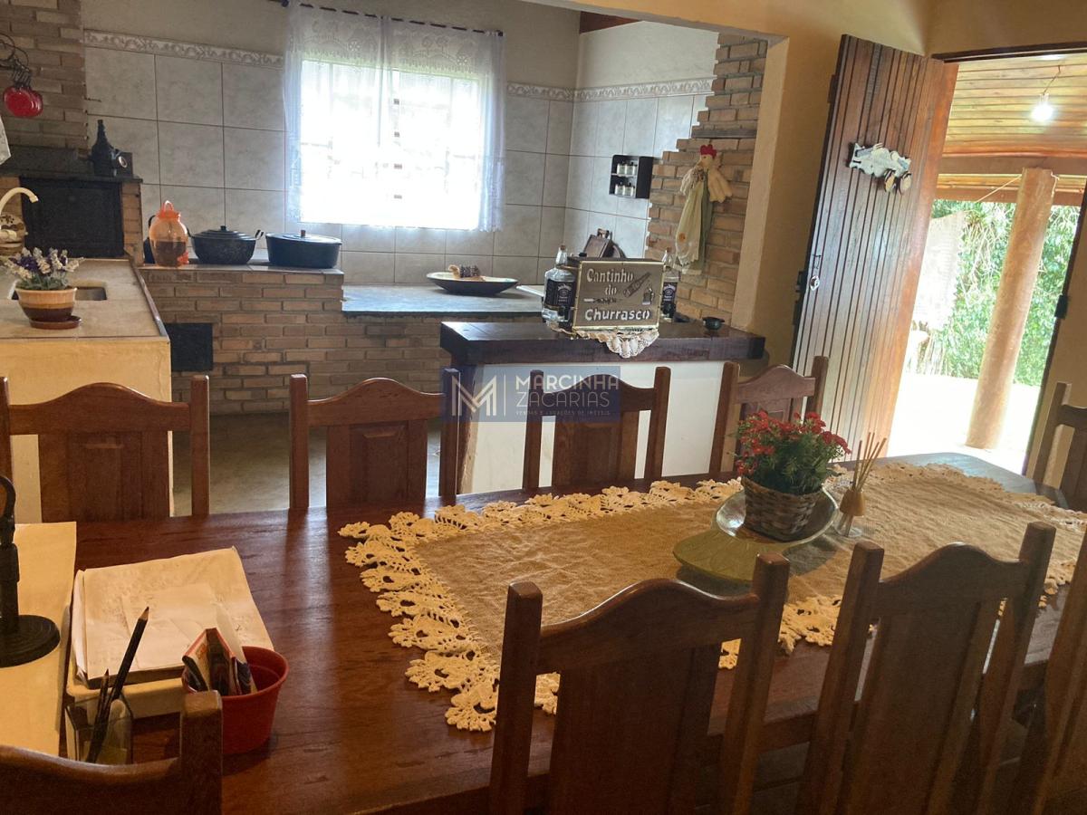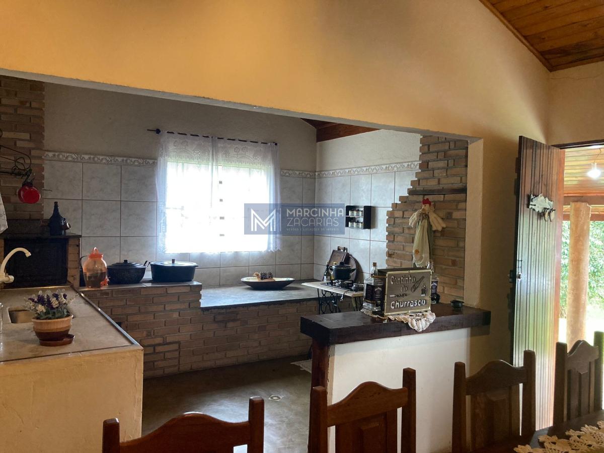 A propriedade tem 4 casas amplas, uma delas com piscina, mais uma casa de caseiro, chiqueiro, baía, pomar, alambique, salão de festas com churrasqueira e fechado com vidros e lago ideal para criação de peixes.