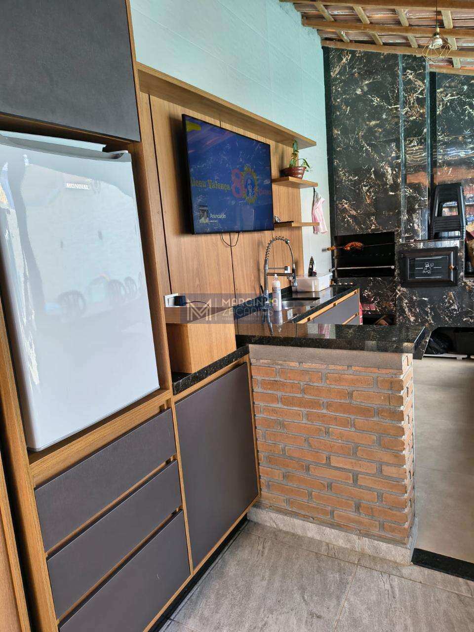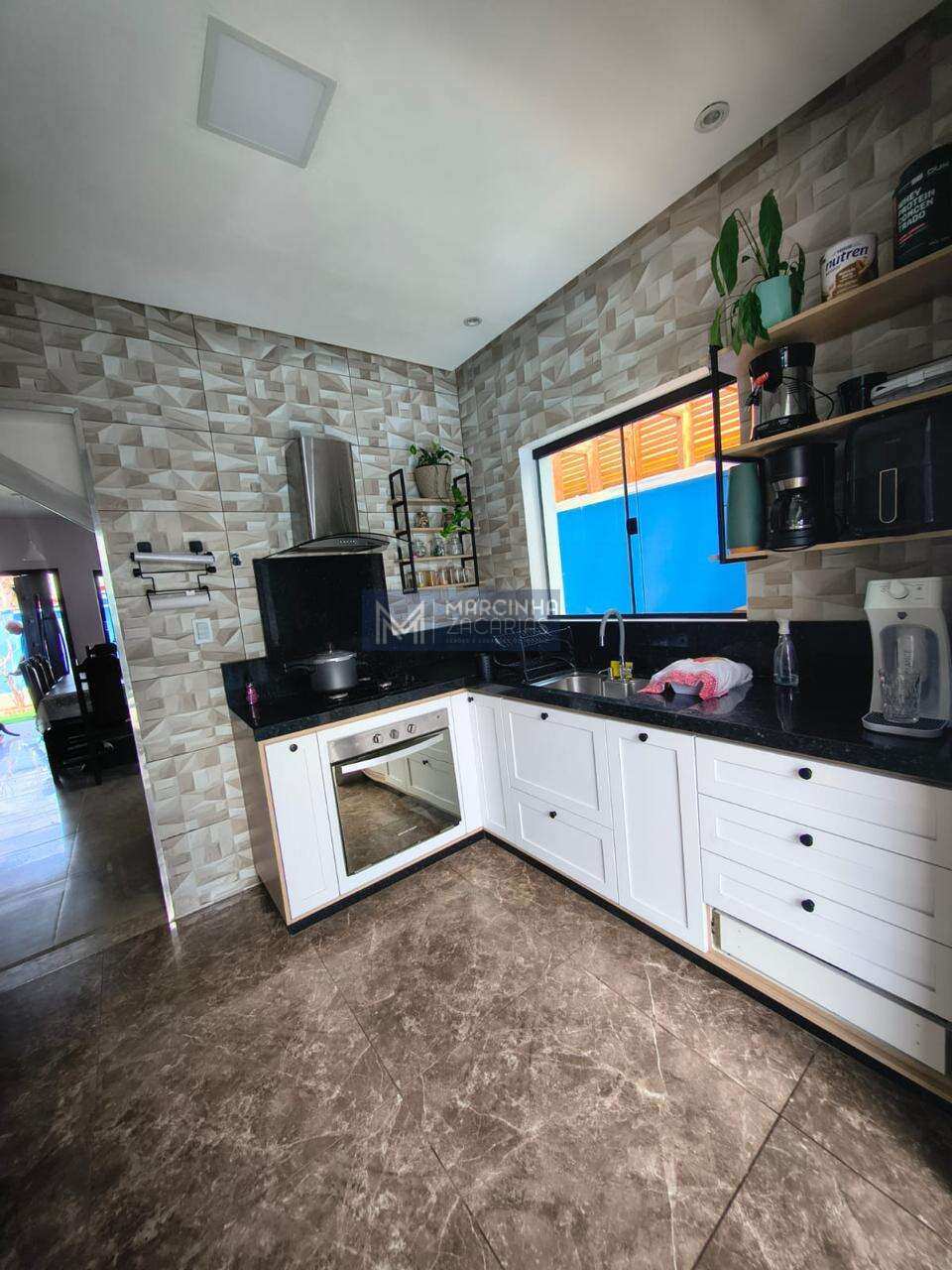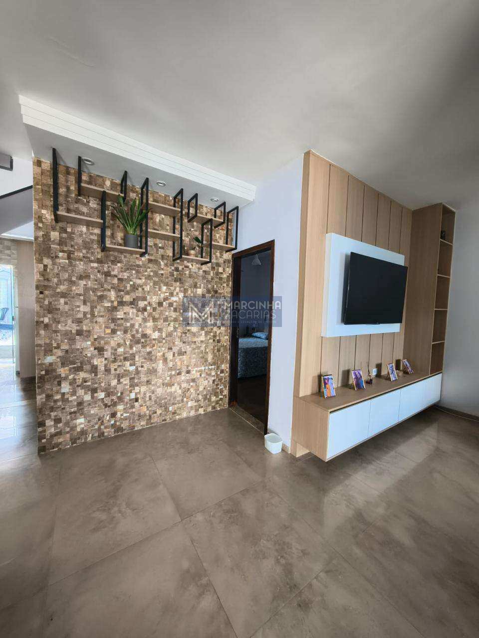 3 dormitórios com ar condicionado, sendo 1 no piso inferior; 4 banheiros, sendo 3 com box; sala de estar com ventilador de teto; sala de jantar; adega climatizada; área gourmet com móveis planejados, fogão a lenha, forno a lenha e churrasqueira; piscina; lavanderia coberta e garagem coberta.